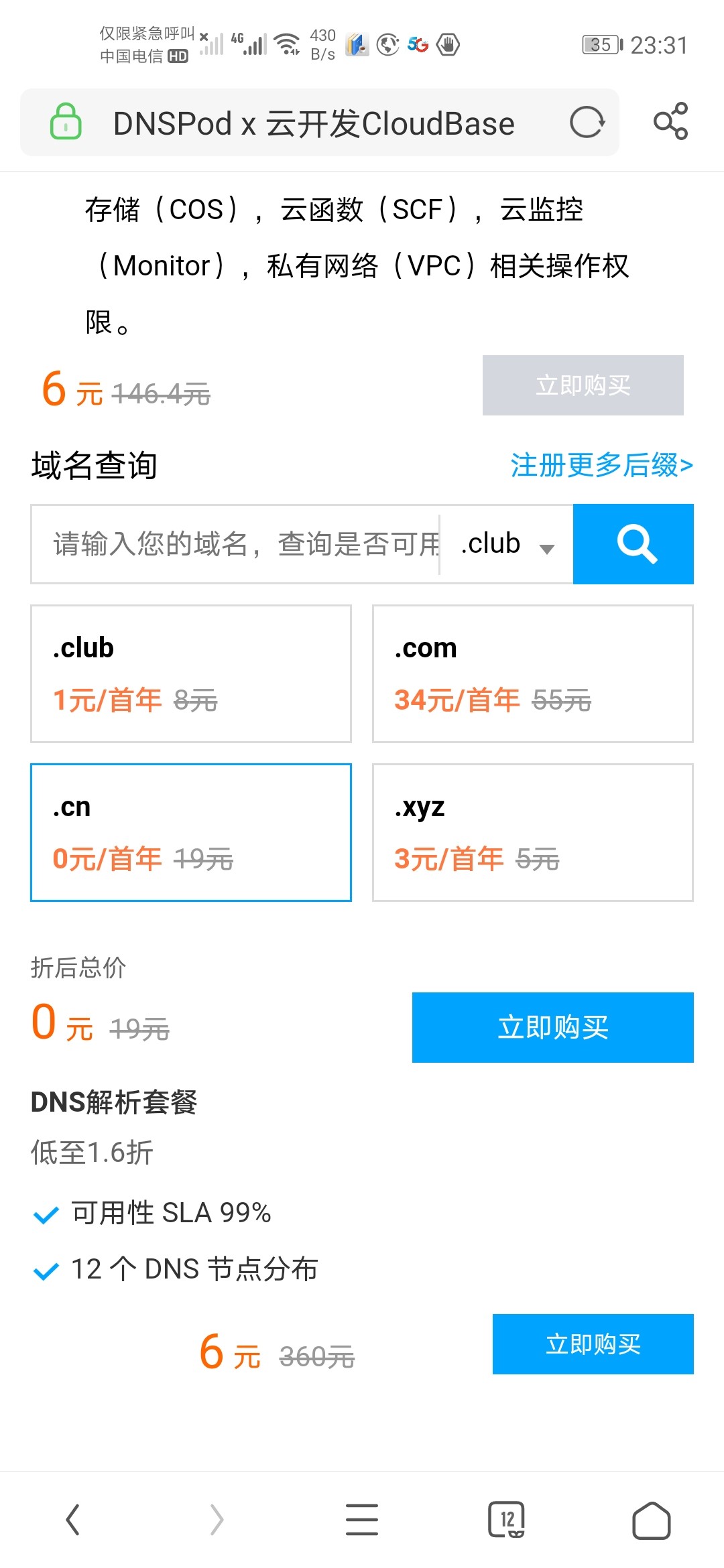 腾讯云活动.cn域名0元注册,一个bug白嫖域名